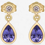 10K Yellow Gold Pear-Shaped Tanzanite and Diamond Drop Earrings / Turn heads with these elegant 10K yellow gold drop earrings, where pear-shaped tanzanite gemstones shimmer with violet-blue brilliance and are beautifully accented by round diamonds for added sparkle. Their 0.86 combined carat weight and delicate half-inch drop create a graceful movement that naturally draws the eye and elevates your style. Lightweight and refined, these earrings are the perfect choice for both day and evening wear, the subtle luxury that completes any look and invites you to step out with confidence. |