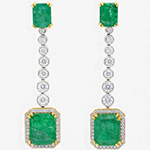 Palladium Silver Zambian Emerald and White Zircon Earrings / Turn heads with these palladium silver Zambian emerald and white zircon earrings from Gems en Vogue, drawing you in with their luxurious 9.87 ctw of vivid green emeralds and brilliant white zircon that instantly captivates. Their rich 24K yellow gold and white rhodium accents create a desire for timeless elegance and refined sophistication. Designed with large posts and secure butterfly backings, they offer the comfort and confidence you want for any occasion, inspiring you to elevate your look with a piece that truly stands out. |