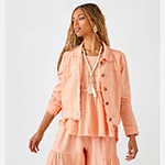 Linen Blend Jacket / Bring fresh, effortless style to your summer wardrobe with this linen blend jacket from Charlie Paige, designed to make every outfit stand out. Available in a range of beautiful seasonal colours, it captures attention with a modern yet tailored jean-jacket silhouette that easily transitions from casual to polished. Made from a naturally breathable linen-viscose blend, it keeps you cool and comfortable while details like multiple pockets, raw-edge seams, adjustable tab sides, and a relaxed fit add both function and style. Slip it on to elevate your warm-weather looks and enjoy versatile, chic dressing all season long. |